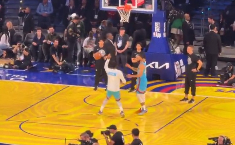 2月17日讯 NBA全明星正赛决赛,奥尼尔队41-25战胜巴克利队,库里当选AMVP。赛后,欧文接受了采访,谈到了自己赛前和库里的交流。